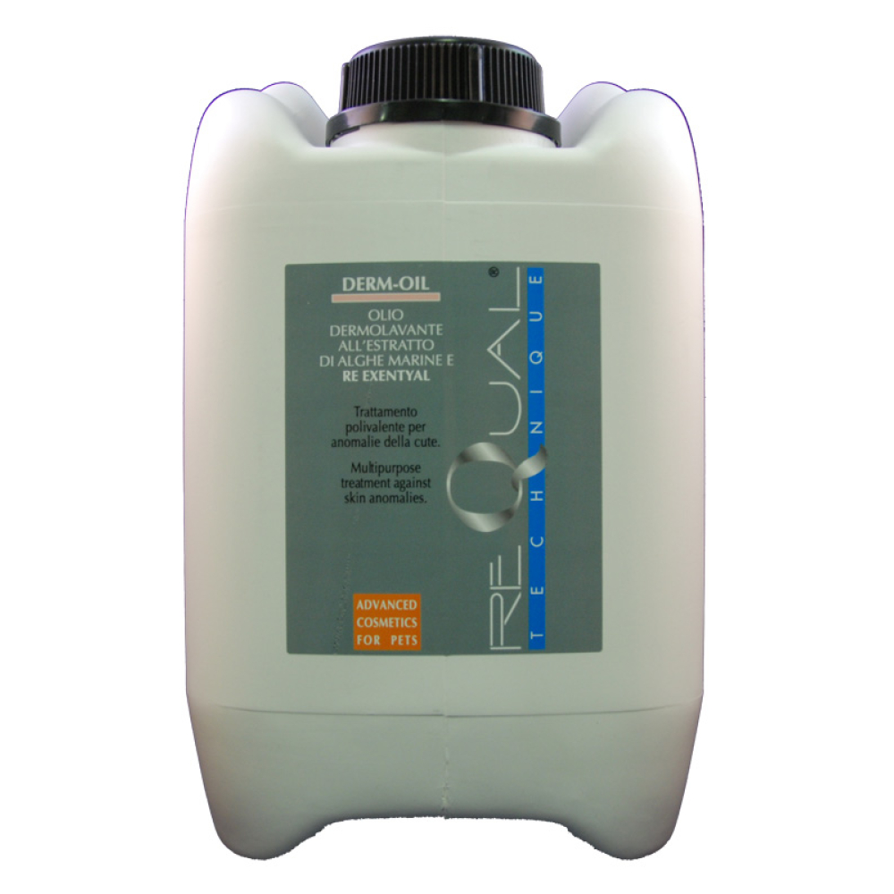 Herstellend bad met oliehoudende bestanddelen. Verwijdert het vuil op een milde en natuurlijke manier. Ontwikkeld voor het bestrijden en voorkomen van huidafwijkingen die de huid aantasten en beschadigen. Herstelt de normale talgproductie. Ideaal voor de behandeling van huidirritaties door de versoepelende en jeukbestrijdende werking. Derm-Oil garandeert al na de eerste behandeling goede resultaten. Het product bevat plantaardige oppervlakteactieve stoffen waarmee de talgproductie wordt genormaliseerd en de huid wordt gereinigd en ontsmet. Bovendien bevat Derm-Oil Re Exentyal dat het natuurlijke evenwicht van het haar en de huid herstelt wanneer deze in een slechte conditie zijn. Het product bevat Ricinusolie met een meervoudige ondersteunende werking. Zeealgenextract ontspant en beschermt de haarstructuur, terwijl toegevoegde Sojaolie de vacht voedt en de glans herstelt.