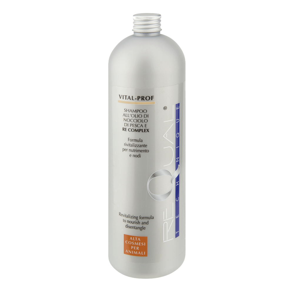 Geconcentreerde professionele shampoo met een herstellende en versoepelende werking. Brengt lange en wollige vachten in conditie. Ideaal voor het onderhoud en de intensieve voeding van de vacht. Milde reiniging met verzachtende en herstellende crème. Door de specifieke samenstelling van het product wordt de vacht ontklit en ontvilt. Bij regelmatig gebruik wordt de keratinestructuur van het haar en de huid versterkt en beschermd. Het product bevat natuurlijke oppervlakteactieve stoffen die het haar en de huid mild reinigen en in conditie brengen. Vital-Prof bevat Re Complex voor een snel herstel van het natuurlijke evenwicht van het haar en de huid van langharige, wollige en klittende vachten. Het product is verrijkt met Perzikpitolie met een ontklittende en versoepelende werking. Liposomen geven energie en glans aan de vacht.