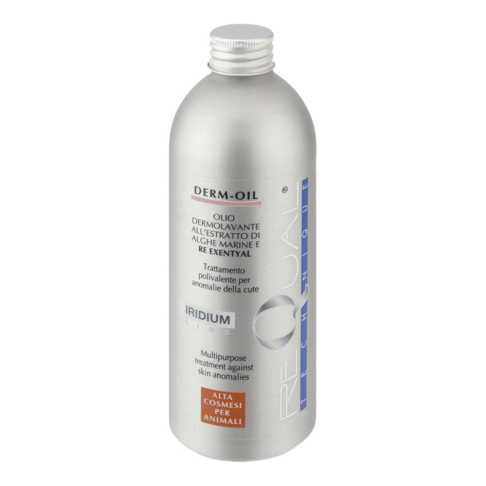 Herstellend bad met oliehoudende bestanddelen. Verwijdert het vuil op een milde en natuurlijke manier. Ontwikkeld voor het bestrijden en voorkomen van huidafwijkingen die de huid aantasten en beschadigen. Herstelt de normale talgproductie. Ideaal voor de behandeling van huidirritaties door de versoepelende en jeukbestrijdende werking. Derm-Oil garandeert al na de eerste behandeling goede resultaten. Het product bevat plantaardige oppervlakteactieve stoffen waarmee de talgproductie wordt genormaliseerd en de huid wordt gereinigd en ontsmet. Bovendien bevat Derm-Oil Re Exentyal dat het natuurlijke evenwicht van het haar en de huid herstelt wanneer deze in een slechte conditie zijn. Het product bevat Ricinusolie met een meervoudige ondersteunende werking. Zeealgenextract ontspant en beschermt de haarstructuur, terwijl toegevoegde Sojaolie de vacht voedt en de glans herstelt.